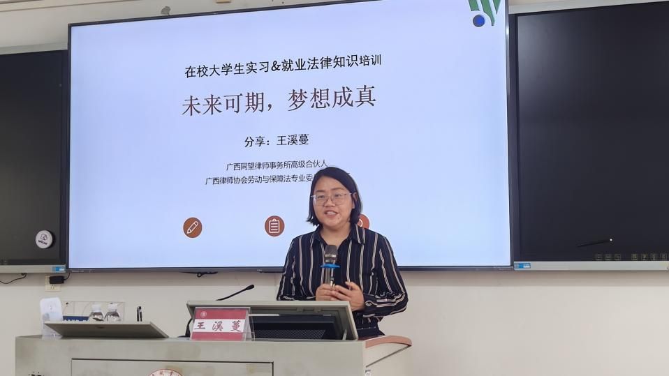 为进一步增强kaiyun开云学生的法律意识,防范实习与就业相关的法律风险,帮助学生全面了解实习与就业相关的法律法规,2025年6月20日,学校邀请学校法律顾问、同望律师事务所律师王溪蔓在鹏飞校区举办了一场主题为“职业院校学生实习与就业法律问题”的专题讲座。