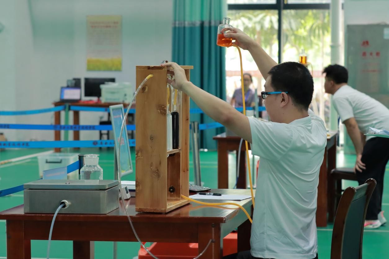 本次竞赛紧密对接全国竞赛标准和要求,设(粮油)仓储管理员和农产品食品检验员两个职业(职业方向),分设职工组和学生组。竞赛进行理论知识考试和技能操作考评项目比拼,两个项目分数加权计算确定总成绩。其中(粮油)仓储管理员实操竞赛内容为计算机粮情检测与分析、检查气调储粮杀虫抑菌效果、风力测定,农产品食品检验员实操竞赛内容为标准溶液配制与标定、粮食验质定等。