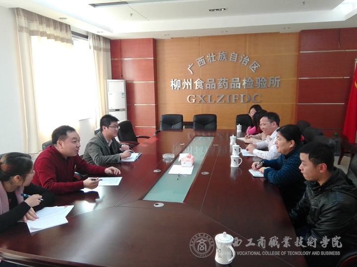 4日下午,调研组一行首先前往柳州市食品药品检验所,看望了14级顶岗实习学生莫韦榆。检验所领导对调研组的到来表示热烈的欢迎,在随后的座谈会上,检验所领导充分肯定了我院顶岗实习学生的工作能力,表示我院学生专业基础扎实,业务能力过硬,工作认真负责,能够很好胜任高强度、高要求的食品检验检疫工作,希望实习学生能进一步提高专业能力,为今后的工作打下更坚实的基础。同时也建议学院加强相关专业的建设力度,为行业输送更多高素质的人才。调研组一行对检验所领导的欢迎表示感谢,双方一致同意继续深化合作。在结束对柳州食品药品检验所的调研后,调研组赴柳州家之宝互联网装修公司看望了磨奕安同学,与企业领导座谈并分享了互联网创业及企业管理的相关经验,双方就共同关心的问题深入交换了意见,就进一步深化合作等事宜达成一致。