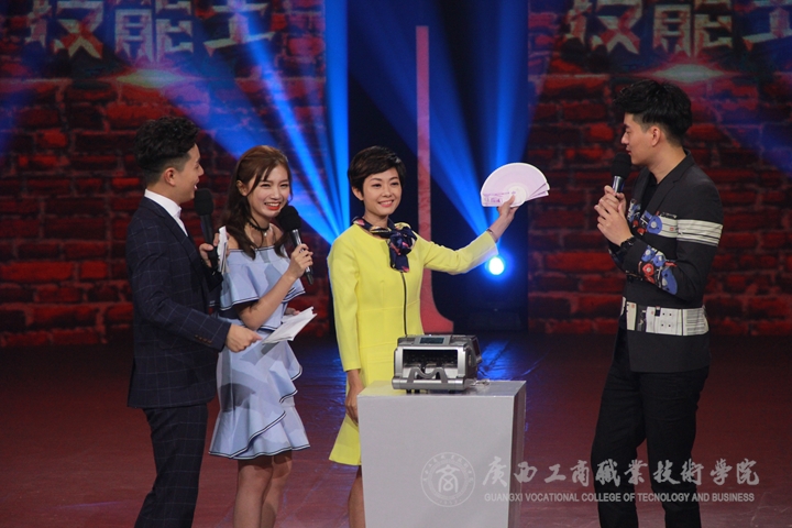 9月30日晚七点半,节目准时开始,参加挑战的专业有园林艺术专业,坭兴陶专业,会计专业。我院会计系庞铁生同学与其他院校组成的挑战队伍,前来挑战会计技能王——点钞机。挑战规则,选手及技能王需把盒子里面的钞票点清分类并捆绑,在白板上写出最终金额。