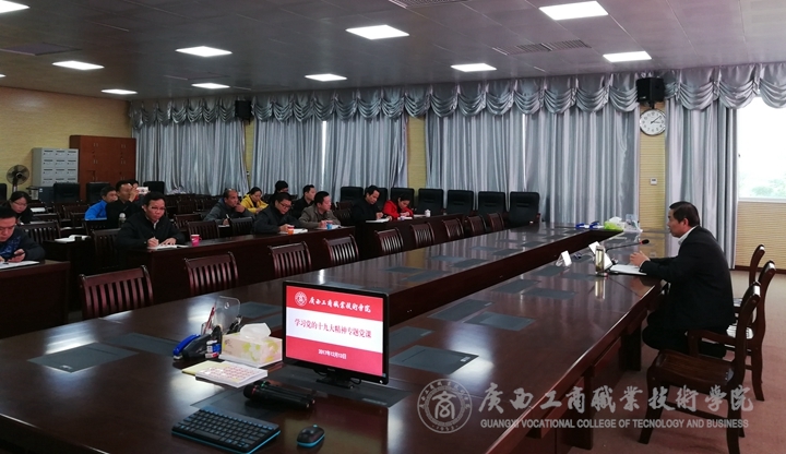 “高举十九大思想旗帜,在平凡的工作中贯彻伟大的精神”,2017年12月13日下午,学院副院长、教授李维给教务科研处、现代教育技术中心、图书馆等3个部门的全体人员上了一堂生动的专题党课。