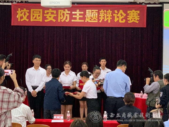 由南宁市公安局主办、我院会计系协办的平安校园基层行系列活动之“安防辩论赛”于2018年11月16日下午在学院2145报告厅隆重举行。出席本次辩论赛的嘉宾有南宁市公安局宣传处处长刘刚、学院后勤管理处处长助理卢炳秋、学生工作处学生资助管理中心副主任黄嘉琦。辩论赛邀请了南宁市公安局宣传处副处长黄皓、宣传处警官雷芸、高新分局警官石征、会计系主任张首楠、学院团委书记张斌担任评委。本次辩论赛由南宁市公安局高新分局政治处警官刘奥和会计系学生会主席莫喜燕共同主持。