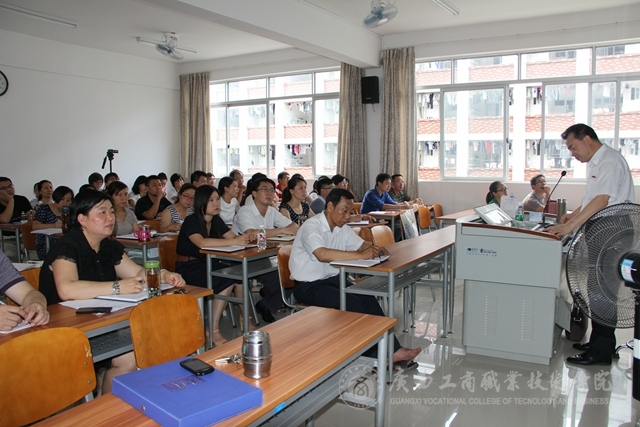2015年5月26日下午2点40分,我院校本部教学楼2318教室人头攒动,原来是经管系全体教师和学院办公室全体工作人员在静静聆听陈杰院长给大家讲授主题为《三严三实从忠诚党的事业开始》的党课。