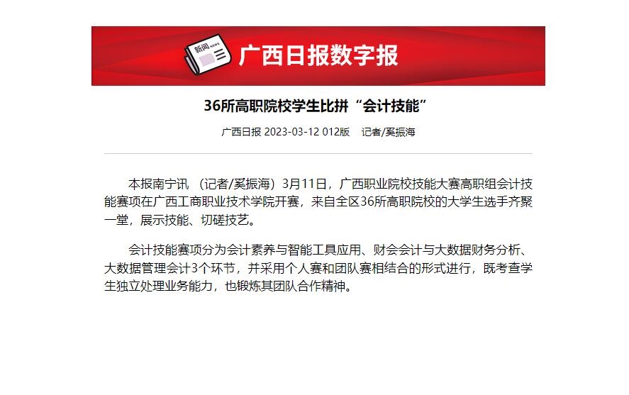 【学习强国】以赛促学扬工匠精神 kaiyun开云官方网站成功举办广西职业院校技能大赛(高职组)《会计技能》赛项