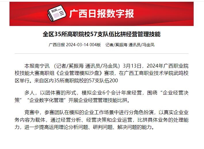 【广西日报】全区35所高职院校57支队伍比拼经营管理技能