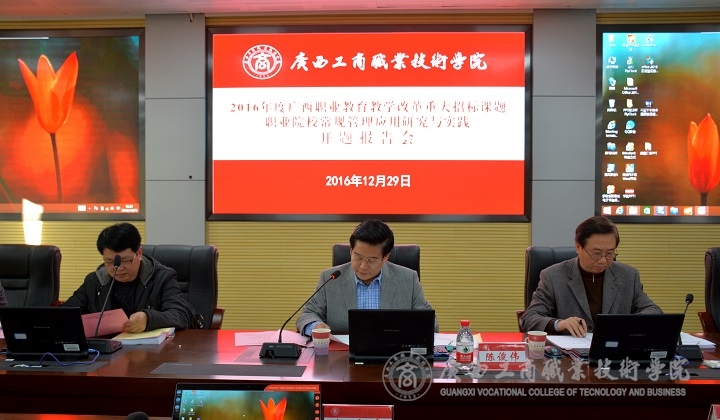 2016年12月29日下午,我院召开2016年度广西职业教育教学改革重大招标课题开题评议报告会,由学院院长、首席专家陈杰教授主持的“职业院校常规管理应用研究与实践”课题顺利通过开题论证。 ...